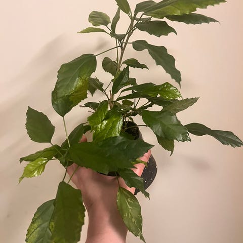Suurehko punakukkainen kiinanruusu valmiina uuteen rakastavaan kotiin.