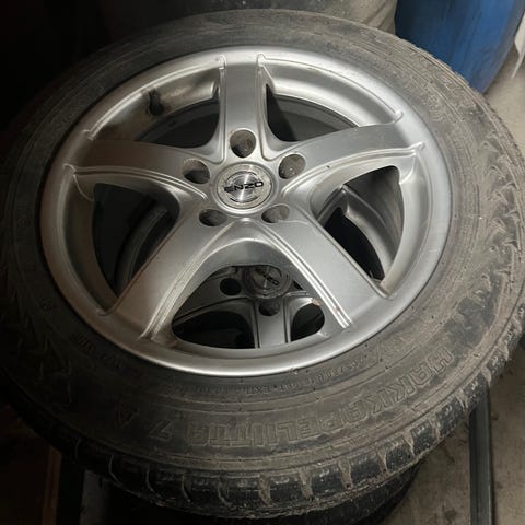 Renkaissa pintaa 7-8mm. Joitakin nastoja puuttuu. Peltivanteet alkuperäiskuntoiset. Olleet MB CLA. Vanteissa paineanturit paikoillaan.