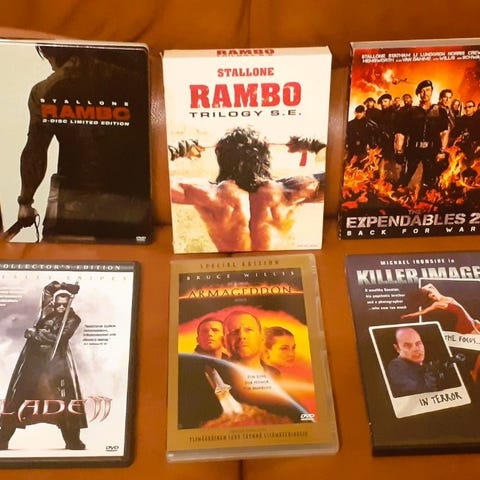 Dvd-Elokuvia Rambo Trilogia Rocky Terminator Beverly Hills Kyttä yms