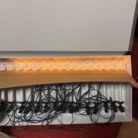 Myydään uusi JYSK kuusenvalosarja jossa 16 nipistimillä kiinnitettävää kuusenkynttilää. Nouto