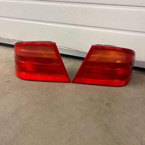 M-B W210 eli sedan LED-takavalot. Ilmeisesti ns. Facelift-look, olleet kuitenkin prefacessa aikanaan. Kunnoltaan ehjät, ei halkeamia tai muita kosmeettisia rikkoja. Kuten kuvista voi huomata, muutama kierreosa kuitenkin puuttuu, tämä huomioitu hinnassa.