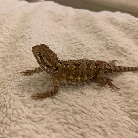 Otathan selvää lajista ja sen vaatimuksista etukäteen. Vaatii ehdottomasti mm. hyvän lämpölampun ja UVB valaisimen.