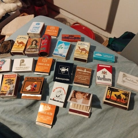 Sisältää tulitikut, nuuska-rasian (tyhjä Ettan), harvinaisemmat Camel -tupakoiden mainoskamman sekä partahöylän.