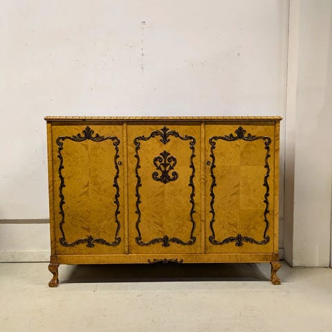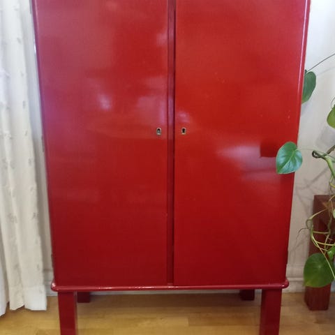 Komea 40-luvun liinavaatekaappi myytävänä. Yleiskunto ikäisekseen erittäin hyvä. Avain tallessa ja lukot toimivat ovissa. Sisusta siisti eikä ole hajuja. Muutamia pieniä ajan jälkiä kannessa. Yksi pieni viilun korjaus ovessa.