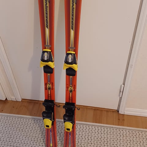 Hyväkuntoiset laskettelusukset siteineen talven lumille.