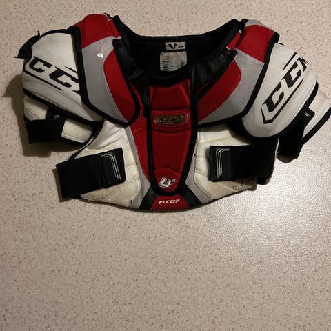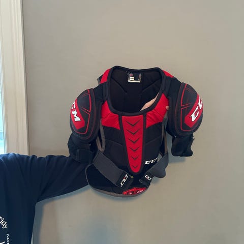 CCM 9510 jääkiekon hartiasuojat mustana. Suojaus on suunniteltu jääkiekon harrastajille ja tarjoaa suojaa hartioille ja rintakehälle. Materiaali ja rakenne on tarkoitettu kestämään jääkiekon vaatimuksia.