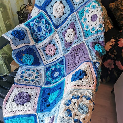 100% merseroidusta puuvillalangasta virkattu peitto.