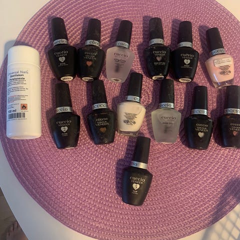 4 geelilakkaa. Kaikki kerran käytettyjä eli lähes täysiä. Kolme Macarons sarjan sävyä ja Delicate French sävy.