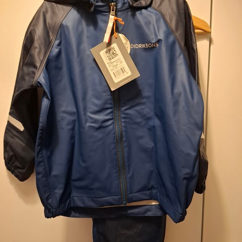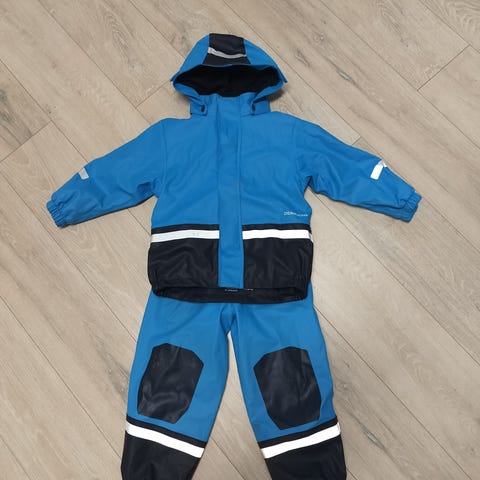 Hyvä sadepuku vielä seuraavalle. Kurahousut polvien vahvikekangas rispaantunut, irrottaisin ehkä kokonaan, huomioitu hinnassa. takki siisti. Myydään settinä