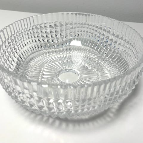 Painava näyttävä lasikulho, Tsekkiläinen boheemi kristallikulho. Ehjä ja siisti mutta hieman käytönjälkeä löytyy.
