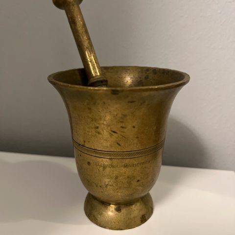 ✨ Kaunis ja siistikuntoinen antiikkinen messingistä valmistettu painava huhmare ja siihen kuuluva survin.