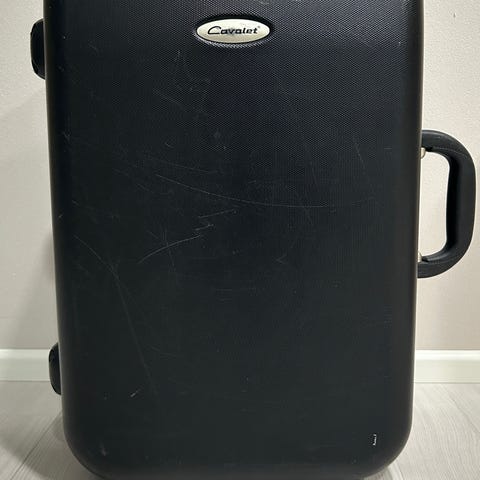 Mitat noin 23x40x65cm (SLK). Ehjä ja vetskarit toimii, pyörien kehikko vahvistettu muovimassalla näkyy yhdessä kuvassa. Mukaan saa matkalaukkuvyön. Laukun saa katsoa ennen ostopäätöstä. Hinta 5€/tai kahvipaketti. Vain nouto Forssasta.