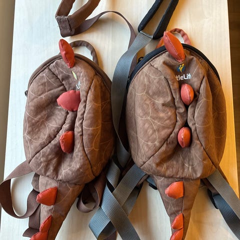 Little life talutusreppu lapsille. Dinosaurus teemainen reppu missä hihna.