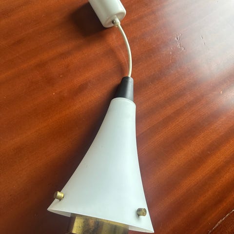 Musta muovinen Ring merkkinen valaisin, suunnittelija Eero Aarnio.