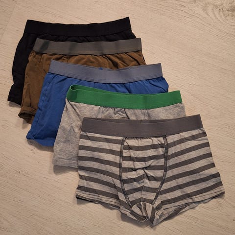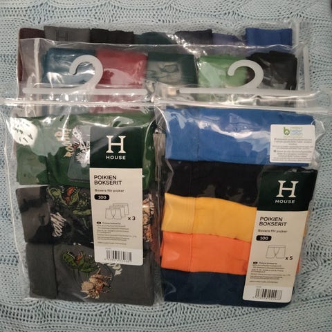 Myydään yhteensä 5 kpl poikien boksereita. Koko 140/146.
