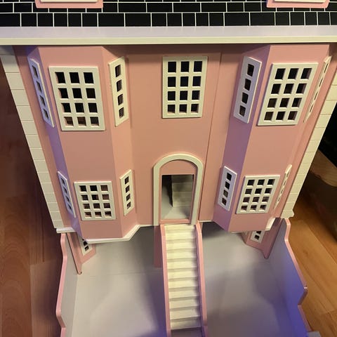 Itse tehty nukketalo. Laudasta tehty eli erittäin tukeva, kestää vaikka päällä istumisen. Leveys 91cm, korkeus 75cm.mmm
