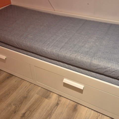 Vuoden aikuisen käytössä ollut jatkettava sänky. Yksi rungon puista (säle) hajonnut ei haittaa käyttöä. Sen jälkeen tehty puulevyjen avulla sängysyä aikuisen kestävä. Ne saa halutessaa mukaan. Myös patjat 2kpl kuuluvat kauppaan.