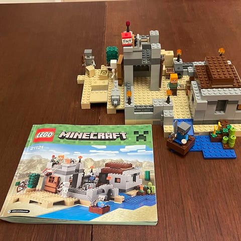 Vihamieliset mobit levittäytyvät ennennäkemättömällä tavalla, ja autiomaasta on tulossa pelottava paikka... On aika rakentaa aavikkolinnoitus! Auta Alexia rakentamaan talo ja tähystystorni, rakenna suojamuuri ja ympäröi linnake palavilla soihduilla. Jätä kesy susi vartioimaan, kun rakennat vuoteen, pöydän, oven, tikkaat ja veneen. Lähde sitten etsimään linnakkeen muurien sisäpuolella viljeltäviä satoja. Kun pimeys laskeutuu, lähestyvien luurankojen siluetit ilmestyvät autiomaan horisonttiin. Tartu aseisiin, lataa TNT-laukaisin ja valmistaudu taisteluun. Rakenna setistä lisää LEGO® Minecraft™ -luomuksia! Mukana on 2 pienoishahmoa sekä erilaisia aseita ja tarvikkeita: Steve ja Alex sekä susi ja 2 luurankoa.