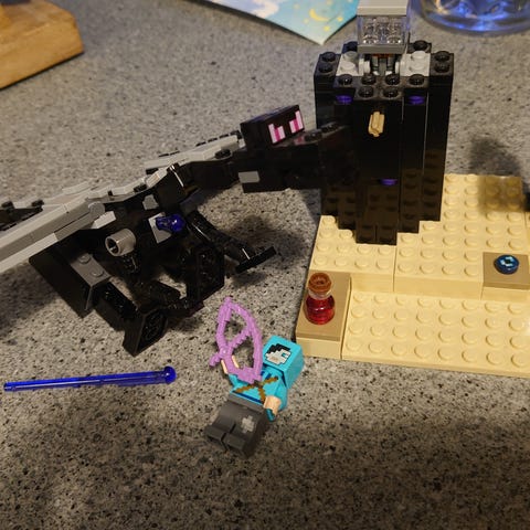 Hyvä setti, pari pientä puutosta: toisen luurangon torso on harmaa iron armoriin sopiva, koska valkoinen luuranko oli haparoitunut. Ehkä pari hiekkablokkia saattaa uupua mutta niitä on tllin kyllin leikkeihin. Pölyä on