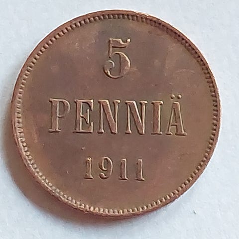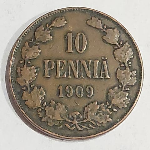 Kuvien 117-vuotias kolikko on ajalta kun olimme osa Venäjää ja Nikolai II hallitsi tittelillä Suomen Suuriruhtinas. Myydään hintaan 2€. Lähetys kirjeessä 4€ lisähintaan. Samalla 4€ kirjemaksulla tulee useampi kohteeni (500g raja!).