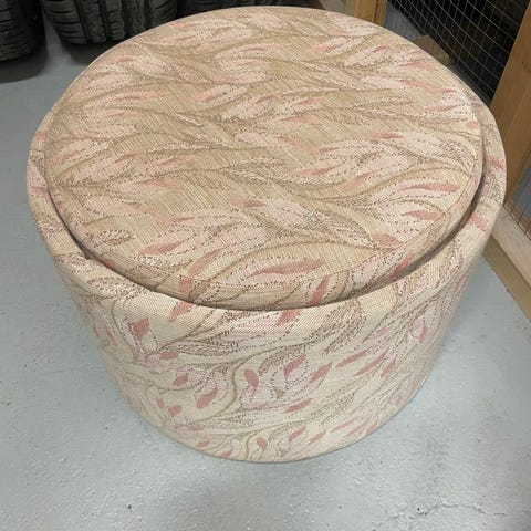Rahi valkoisilla puujaloilla ja beigen värisellä ruutukankaalla. Sopii istuma- tai jalkatuoliksi. Materiaali puu ja kangas.