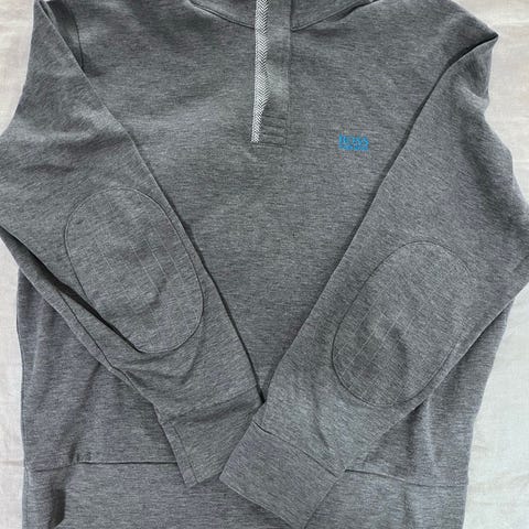 Kuvien harmaa Hugo Boss college paita. koko on L, tosi hyvässä kunnossa, postitus onnistuu.