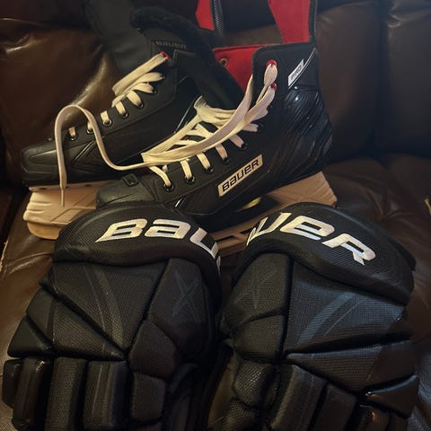 CCM LUISTIMET KOKO 41 bauver hanskat koko 13/33cm + 2kpl CCM komposiitti vasen Kätisiä mailoja mukaan 2 jää kiekkoa