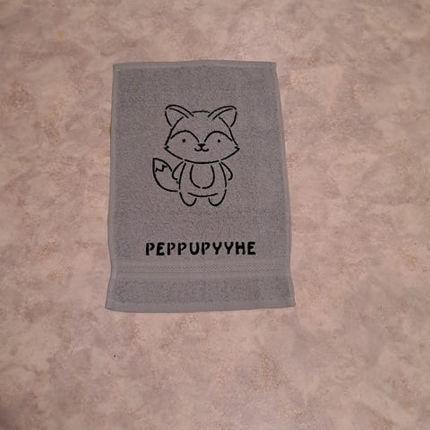 Uusi siniharmaa 30x50cm pyyhe, käsinpainettu dinosaurus kuva ja peppupyyhe teksti.