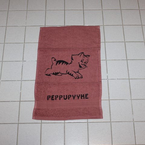 Uusi tummanharmaa 30x50cm pyyhe, käsinpainettu hiiri kuva ja peppupyyhe teksti.