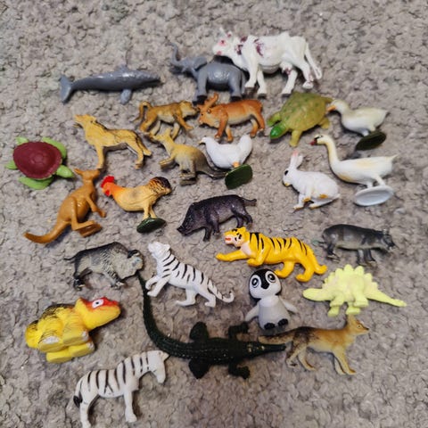Anamalz puiset eläinhahmot, joissa on neljä erilaista eläintä. Eläimet on valmistettu puusta ja niissä on eri värejä ja yksityiskohtia. Sopivat koristeeksi tai leikkeihin.