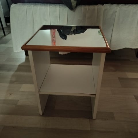 Valkoinen itse maalattu pikkulipasto. Eläinkoti.