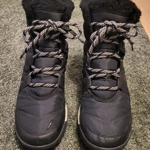 Sorel talvikengät koko 39. Kengät on suunniteltu talvikäyttöön ja ne tarjoavat suojaa kylmiltä ja kosteilta olosuhteilta. Väri harmaa mustilla yksityiskohdilla. Kengissä on lämmin vuori ja ne on varustettu kestävällä ulkopohjalla liukkauden estämiseksi. Sisäpituus 25cm.