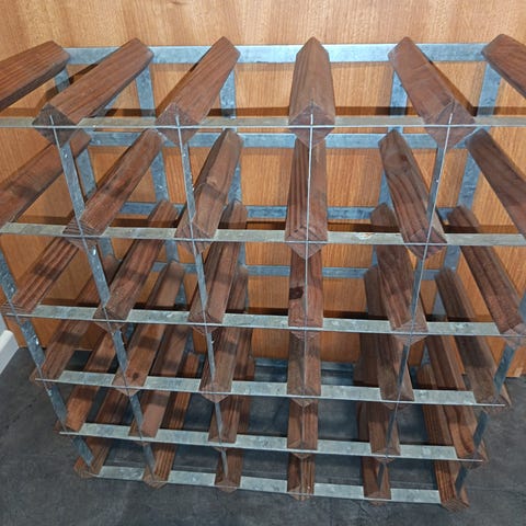 Metallinen, musta viinipulloteline 18 pullolle, ryhdikäs, tyylikäs. Nouto.