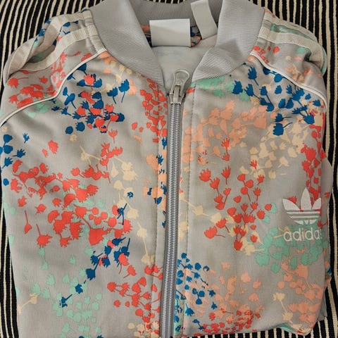 Adidaksen verkkatakki, koko 160 cm. Vetoketju ehjä. Muutoinkin ehjä, tahraton ja siistikuntoinen.