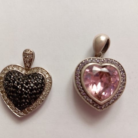 Myydään hopeinen kaulakoru, kullattu tuplasydän zirkonioilla.