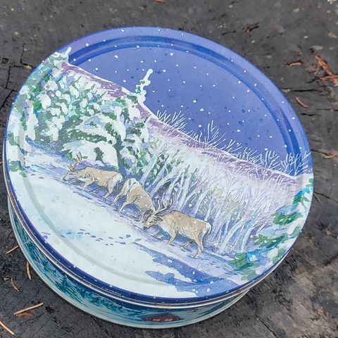 Ostetaan kuvan mukainen keksipurkki. Pieni tyttö on suruissaan kun joulukeksipurkki tipahti häneltä lattialle ja meni sirpaleiksi. Jos sulta löytyy purkki kuusen kuvalla ja olisit valmis luopumaan niin laita viestiä.