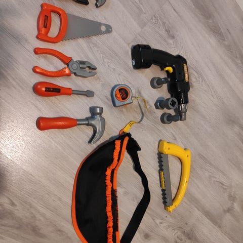 Myydään erilaisia lasten työkaluja yhteensä 13 kpl.