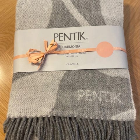 Myydään käyttämätön Pentikin Harmonia-torkkupeitto. Pakkaus sanoo värin olevan punainen, mutta todellisuudessa tummempi sävy on violettiin taittavaa viininpunaista ja vaaleampi haaleaa liilaa. Peitto on 100 % villaa ja kooltaan 130 x 170 cm.