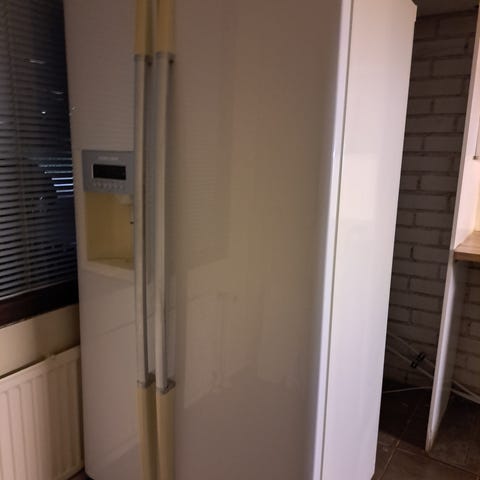 Toimii hyvin ja sisätä hyvässä kunnossa. Ulkopuoli on mitä on kun on tehty integroitavaksi kalusteisiin