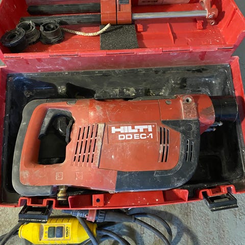 Järeä ja toimiva Hilti DD 130 -timanttipora. Mukana porakruunun jatkot/akselit sekä vesiliitäntä. Sopii betoniin ja muuhun kovaan materiaaliin. Ammattitason kone, normaalia käytön jälkeä mutta täysin toimiva.