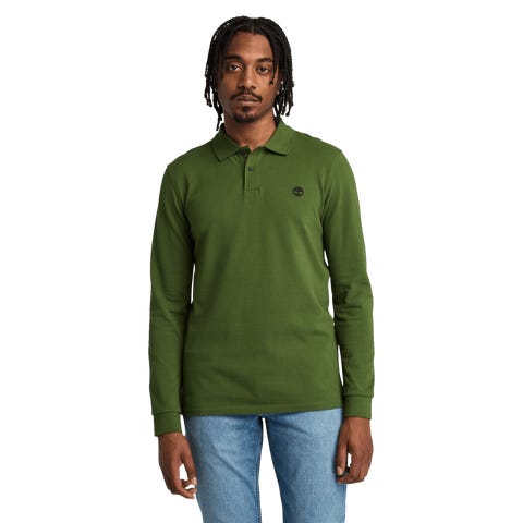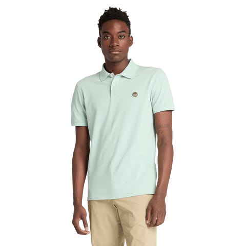 Klassinen miesten pikeepaita 100 % luomupuuvillaa. Ribbikaulus ja brodeerattu Timberland®-puu rinnassa. Normaali malli ja tyylikäs design niin arkeen kuin vapaa-aikaankin.