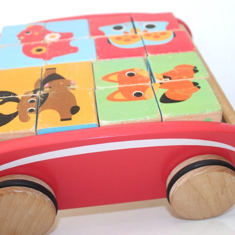 Suunniteltu auttamaan lapsia oppimaan värejä ja muotoja sekä stimuloimaan loogista päättelyä, kun rakennuspalikat sovitetaan juustoaiheisen lajittelukärryn reikiin.