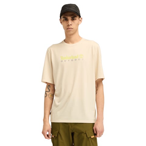 Miesten UV-suojattu t-paita, jonka edessä on näyttävä graafinen Timberland-kuvio. Valmistettu 100 % ReBOTL™-neuloksesta, joka on vähintään 40 % kierrätettyä PET-muovia. Mukava ja tyylikäs design.