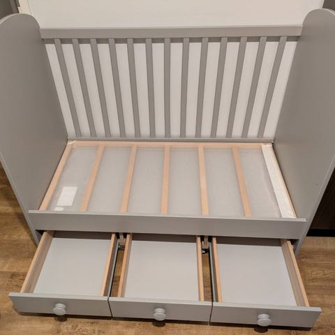 Toinen sängyn laidoista voidaan irrottaa, kun lapsi on tarpeeksi vanha menemään itse sänkyyn ja nousemaan sieltä pois.