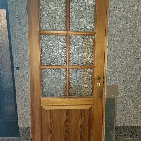 Ovi on käsittelemätön, ollut keskeneräisen huoneen ovena, nyt remontin alta pois