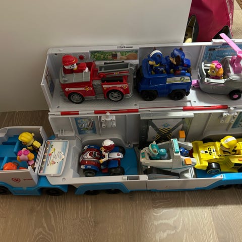 Kovasti leikitty iso Ryhmä Hau rekka seuraaviin leikkeihin. Mukaan Vahti ja Vahdin ajoneuvo. Lelun ominaisuuksiin kuuluu avattavat rekan osat ja äänet.