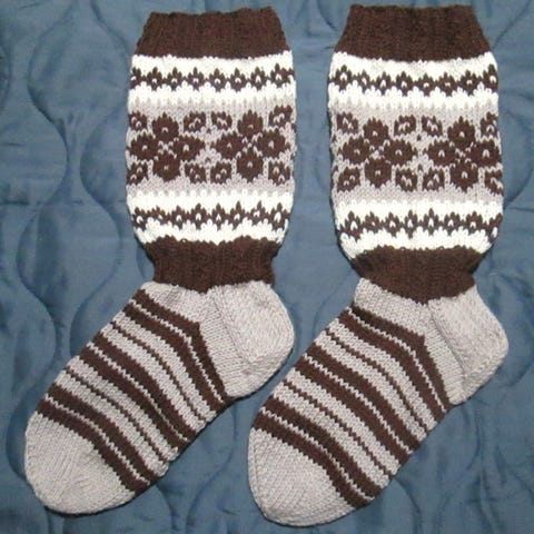 Koko 37. Jalkaosan pituus 24 cm ja varren pituus nilkasta ylöspäin 23 cm. Hinta 20 euroa. Kivijalka kaupunki sukkalanka. Kotoa noudettuna käteismaksu.