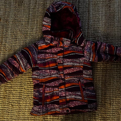 Hihansuissa lumilukot. Takki on pesty hajusteettomalla pesuaineella.