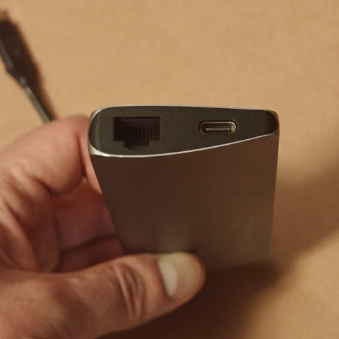 Satechi USB-C Mobile Pro Hub sovitin, joka tarjoaa useita liitäntämahdollisuuksia yhdistettynä USB-C-porttiin. Sovitin on suunniteltu laajentamaan laitteen liitettävyysvaihtoehtoja, sisältäen muun muassa USB-portit, HDMI-portin ja kuulokeliitännän. Sovitin on väriltään hopea ja sopii erityisesti käytettäväksi mobiililaitteiden kuten iPad kanssa.