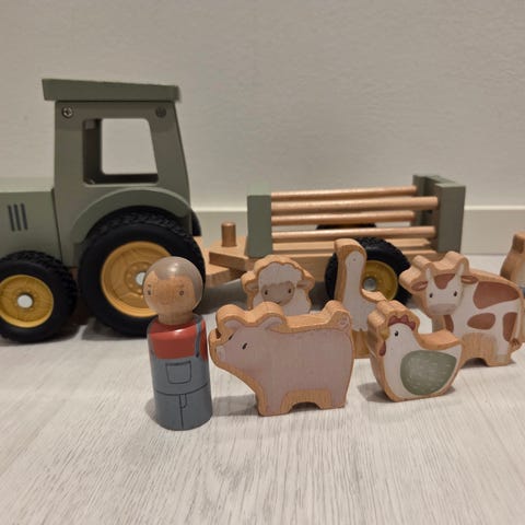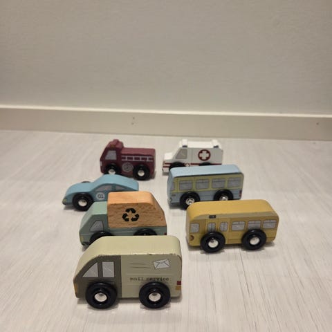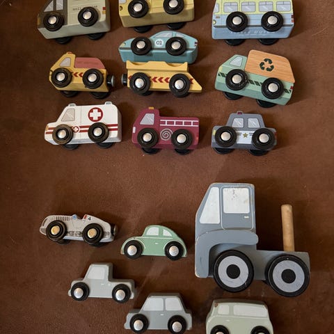 Myyntiin puinen little dutch autonkuljetusauto, kuski ja 4kpl pikkuautoja, jotka sopivat kyytiin. Siisti käytetty kunto. Pientä käytönjälkeä, joka yritetty näyttää kuvissa. Pyyhitty kostealla.